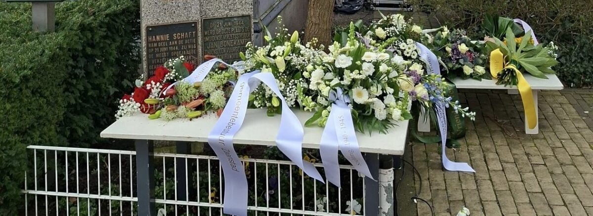 Natuurlijk waren wij namens Amnesty Zaanstreek ook weer bij de herdenking van Hannie Schaft in Zaandam. Na toespraken van wethouder Natasja Groothuismink en Yvonne Kelatow en gedichten van twee meiden van basisschool Hannie Schaft legden we bloemen naast die van een aantal lokale politieke partijen en organisaties bij het monument van Hannie in de Westzijde.